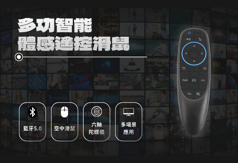 集遙控器、滑鼠、語音於一身的多功能智能空中滑鼠,配備 6 軸陀螺儀與藍牙 5.0,精準、穩定、好上手,一支搞定全設備操作。 •多功能全能操控:結合遙控器、空中滑鼠、語音輸入,取代多種控制器 •6 軸體感陀螺儀:內建陀螺儀+重力感測器,操作精準穩定 •支援紅外線配對:可複製家中常用遙控器按鍵,一支搞定多設備控制 •多元場景應用:適用車用安卓盒、電視盒、智慧電視、PC、投影機、手機、筆電等多種設備 •語音輸入功能:支援語音搜尋與語音操作 •人體工學握感設計:長時間使用也舒適,操作更省力