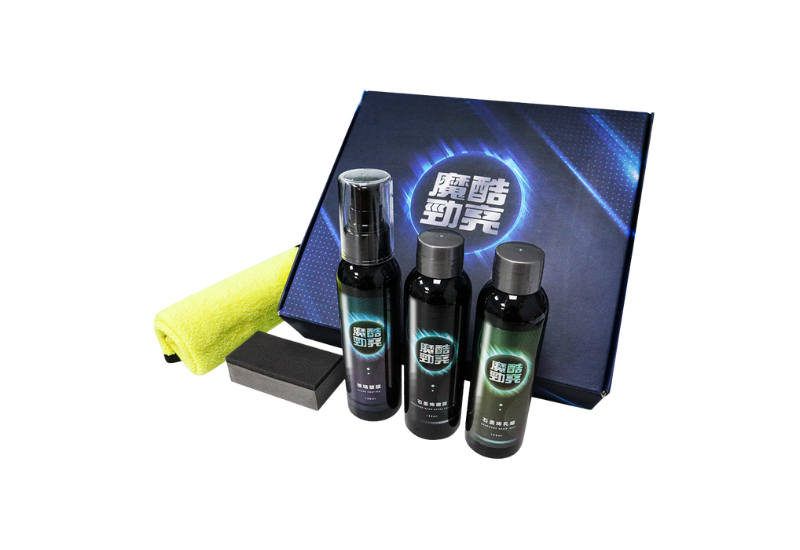 -產品內容:魔酷勁亮石墨烯全方位鍍膜液(125ml)、魔酷勁亮石墨烯乳蠟(125ml)、魔酷勁亮超效玻璃鍍膜劑(125ml)、鍍膜海棉、專業纖維布 -產品成分: 1.魔酷勁亮石墨烯全方位鍍膜液:石墨烯、聚四氟乙烯、分子矽素、純水 2.魔酷勁亮石墨烯乳蠟:石墨烯、聚四氟乙烯、陶瓷化合物、異丙醇、界面活性劑、矽聚合物、特殊配方 3.魔酷勁亮超效玻璃鍍膜劑:異丙醇、氟矽化合物、純水 -使用方式 : 1.魔酷勁亮石墨烯全方位鍍膜液 : 將車身洗淨後 , 擦拭乾淨 , 全車噴上石墨烯鍍膜液 , 均勻擦拭 , 靜待 5 - 10 分鐘 , 徹底推均勻 , 完成後即見明顯效果。 2.魔酷勁亮石墨烯乳蠟:1.先將車身徹底清潔乾淨 , 並擦乾殘留水滴 2. 手工上蠟或輕壓機器上蠟 , 取適量乳蠟來回輕推並拋光 , 靜待 5 - 10 分鐘 3.下蠟 , 使用專業纖維布 , 將乳蠟徹底推均勻 , 完成即有明顯之效果。 3.魔酷勁亮超效玻璃鍍膜劑:玻璃清潔後 , 噴於玻璃表面 , 使用超細纖維布擦拭 , 重複處理清潔油膜 , 再次噴塗 , 等待約 1 5 分鐘 , 待表面乾燥 , 再以超細纖維布重複擦拭至光亮 , 竟至半天至一天 , 即可碰水。 -注意事項: 1. 陽光曝曬後,玻璃溫度高的情況下勿使用 2. 避免兒童接觸 3. 不可食用,如不慎誤食,請立即就醫 4. 使用後請洗手 5. 保存應避免陽光直射或高溫處