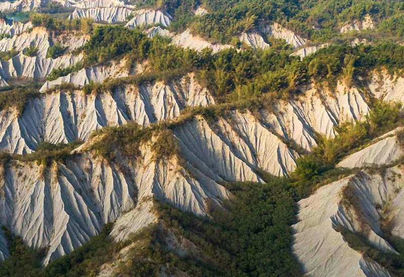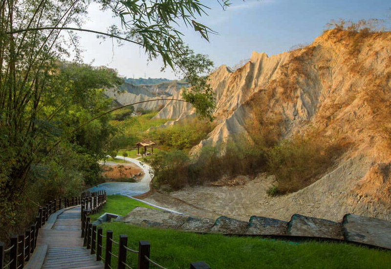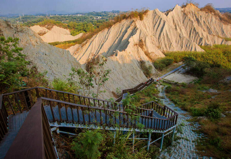 漫步在荒涼惡地,感受地球表面最奇幻的「月球」漫步之旅! 高雄田寮月世界,一個彷彿被遺忘在地球上的奇幻國度,以其獨特的「惡地」地形,成為南台灣最受歡迎的秘境之一。 這個特殊景觀在地理學上稱為「惡地」(Badlands),是由於質地鬆軟的泥岩,經過長年累月的雨水侵蝕與風化作用,形成一條條光禿禿、尖銳的山脊與蝕溝,植被難以生長,因此從遠處望去,地貌猶如月球表面般荒涼,充滿了原始又蒼涼的美感。沿著步道緩緩爬升,從不同的角度欣賞月世界的壯闊全景。登上弦月觀景台,更能將這片獨特的惡地盡收眼底,感受前所未有的視覺震撼。