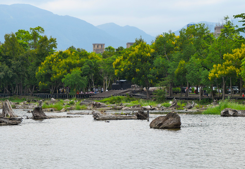 羅東林業文化園區佔地寬廣,漫步其中,彷彿穿越回日治時代的林業小鎮。園區核心的貯木池湖光粼粼,倒映著成排的漂流木,寧靜而美麗。您可以沿著環湖步道散步,欣賞水生植物,或在池畔的木棧道上休憩,感受微風吹拂。除了自然美景,園區內的歷史遺跡更是引人入勝,古老的蒸汽火車頭與森林鐵道靜靜地展示著當年的繁華,訴說著林業發展的歷史。而一整排的日式宿舍群,則讓人沉浸在濃濃的懷舊氛圍中。部分宿舍已改造成藝文展覽館、文創商店與木工DIY教室,讓您能更深入地體驗林業文化。 逛完園區後,不妨前往品嚐在地小吃,為您的旅程增添美味。園區入口附近的老字號林場肉羹,以獨特的肉羹口感和香醇湯頭聞名。如果想一次滿足所有味蕾,也可以到不遠處的羅東夜市,這裡有知名的阿灶伯當歸羊肉湯、三星蔥餅、包心粉圓等,讓您吃得盡興。