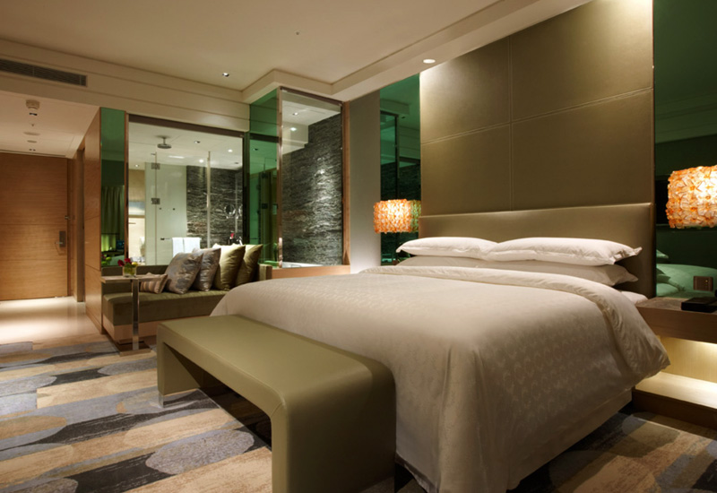 o 特色、服務與建築: 豐邑喜來登大飯店位於新竹,建築外觀結合現代簡約與在地元素,內部設計則將自然與科技巧妙融合。酒店大廳寬敞明亮,透過燈光和材質的運用,營造出時尚與溫馨並存的氛圍。客房設計獨具匠心,以溫馨木皮搭配草綠色壁紙,地毯採用多層次設計,花朵造型壁燈則增添藝術氣息,並特別設有高科技電動式半透明捲簾浴室,展現現代科技與舒適生活的結合。 o 豐邑喜來登大飯店特別推薦給追求現代化設計、重視飯店設施(尤其是親子設施)的家庭旅客,以及需要商務會議空間的企業客戶。無論是休閒度假或商務差旅,都能在此享受到高品質的服務與舒適的環境。