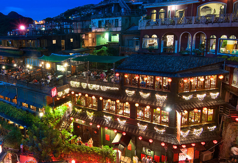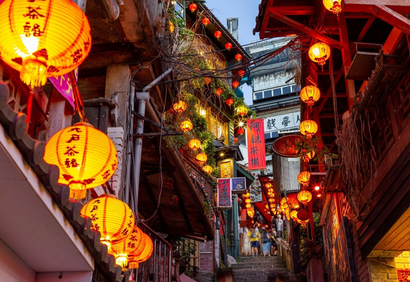 九份老街就像是一座時光寶盒,走進這裡,彷彿回到日治時期的黃金年代 。沿著蜿蜒的石階往上走,兩旁的紅燈籠和古老的建築,散發著濃濃的懷舊氣氛 。這裡最迷人的,莫過於傍晚時分,當紅燈籠亮起,整座山城被點亮,美得像一幅畫 。逛老街時,除了品嚐芋圓、草仔粿、芋粿巧等在地小吃 ,也別忘了到阿妹茶樓喝杯茶,欣賞山海交織的絕美景色 。如果你是電影《神隱少女》的粉絲,這裡的場景一定會讓你感到非常熟悉 。從台北市區開車前往九份,大約一小時左右,沿途的蜿蜒山路也是一種風景 。