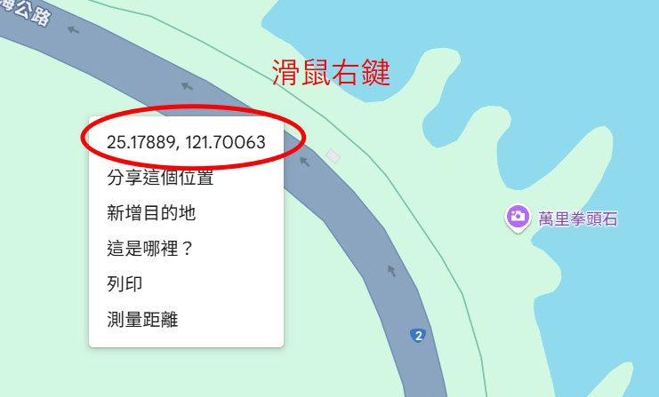 在Google地圖上、點擊滑鼠右鍵即出現GPS定位經緯度、輸入數字即可